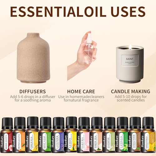 12 Pack Fragrance Essential Oils Set, 10ml Essential Oils Applicable to Humidifiers, Air Purifier, Diffuser, Candles, Drye...