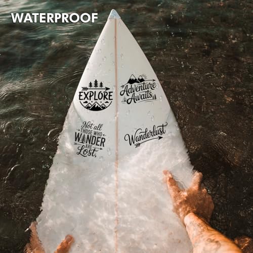 (4PCs) Adventure Quote Decal Set Black UV DTF Decal Waterproof Durable Easy to Apply Adventure Awaits Explore Wanderlust B...