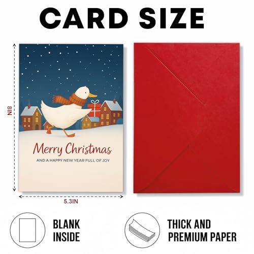 (5.3x8in) Cute Duck Christmas Card, Merry Christmas and Happy New Year Full of Joy, Handmade Holiday Greeting with Festive...