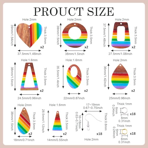 Cheriswelry 8 Pairs Walnut Wood Earring Kit Rainbow Earring Pendants Wooden Resin Charms Hang Ornament Earring Hooks Jump ...