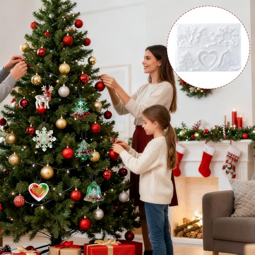 Christmas Resin Molds, Christmas Silicone Mold for Epoxy Resin, 6 Designs Ornament Mold with Xmas Tree Snowflakes Reindeer...