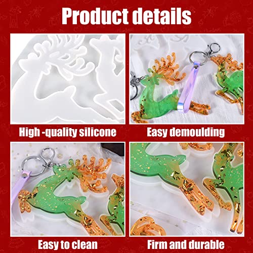 Christmas Resin Molds, Elk Reindeer Christmas Ornament Siliocne Moulds, Xmas Silicone Mold for Resin Casting, Deer Pendant...
