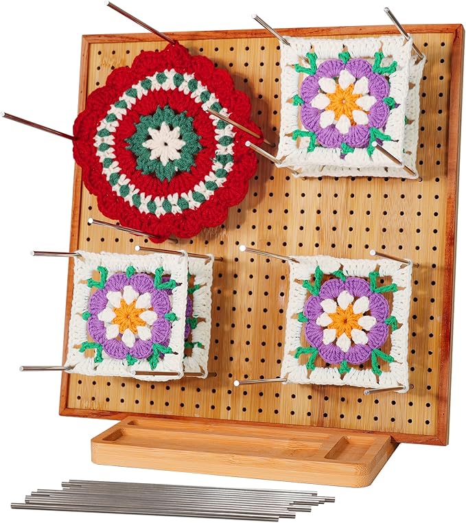 HHSarioneiro 11.8" Crochet Blocking Board with 16 Pins/Pegs, Granny Square Blocking Boards for Crochet Projects, Wooden Cr...