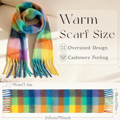 Lainlight Warm Scarf for Women Winter Cold Weather Chunky Oversized Scarf Long Blanket Plaid Scarves