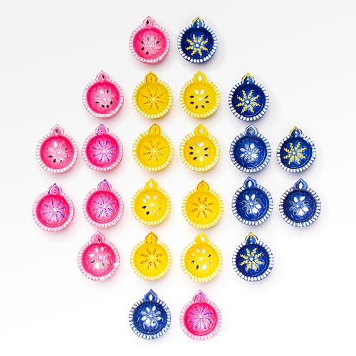 (Pack of 24) Clay Diyas with Cotton Wicks, Diwali Decorations for Home, Mitti Diyas for Pooja, Indian Pooja Decor for Mand...