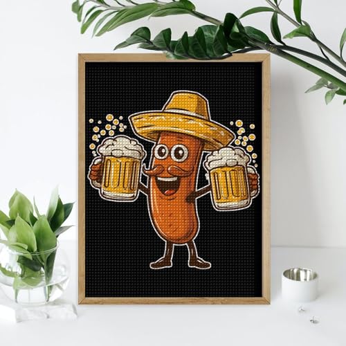 Sausage Beer Mugs 5D Diamond Art Kits for Adults Gem Painting Square Drill Home Wall Decor