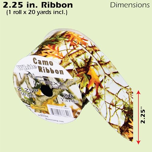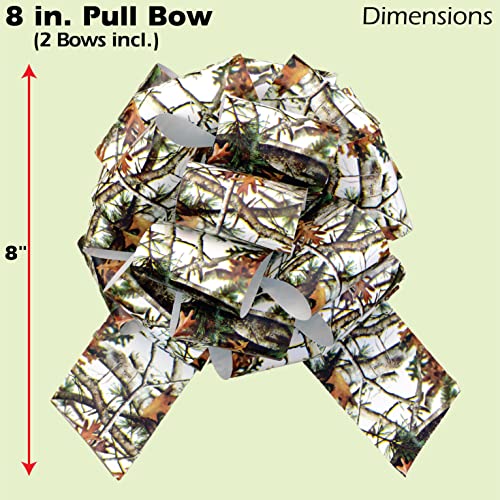 White Hunting Camo Ribbon & Bows Gift Wrapping Kit - 40 Yards of White Camouflage Ribbon and 5 Camo Bows for Gifts, Christ...